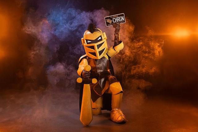 When developing the concept for this creative project, we wanted to take a different approach by placing the license plate in an unexpected environment. Inspired by UCF's mascot, Knightro, we explored various ways to incorporate a medieval theme while emphasizing school spirit without falling into something expected.